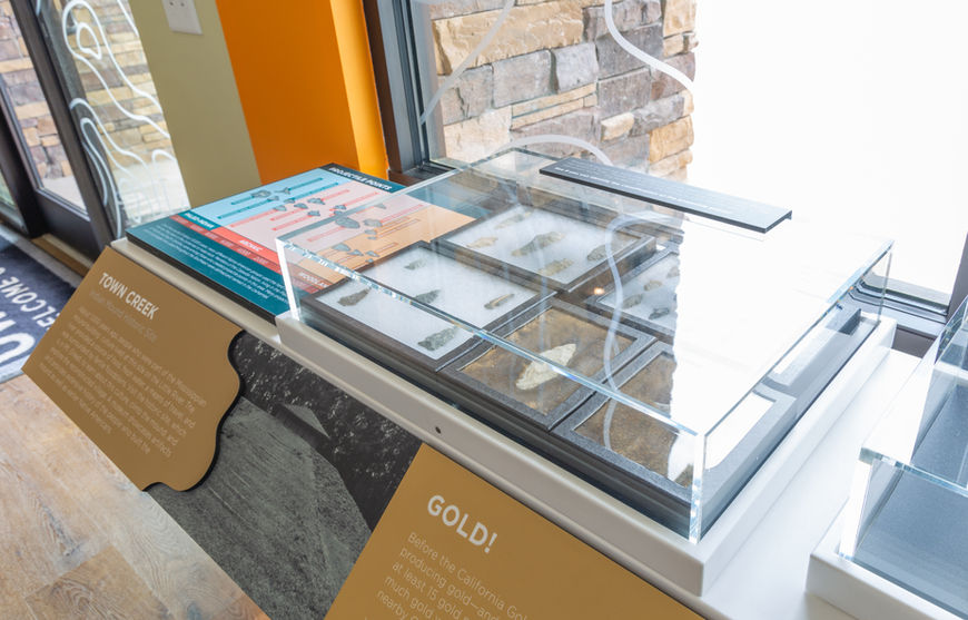 The exhibits in the center are arranged to give visitors just a peek into the activities that are offered in the Uwharrie National Forest: hiking, horseback riding, biking, camping, kayaking, and off-roading. A central map helps visitors orient themselves to plan for a day trip or weekend getaway, or to create a checklist of things to do. Three stations allow visitors to have an immersive experience to understand the trail system.