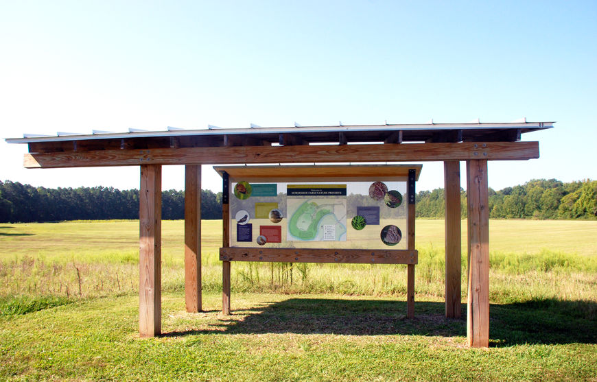 The site has unique sustainable features, a bit of cultural history, and tons of natural history. The Design Dimension team helped the City of Raleigh to highlight these special features in a series of interpretive signs for the park. First, we helped to map out the sign locations by creating a wayfinding site plan. We worked with the city and family to create custom illustrations and detailed graphics including timelines and custom maps. The largest kiosk sign utilized a perforated metal to keep the look light and airy, helping the visitor look past the sign into the open pasture while interpreting the map. Overall, the signage should add to the visitor experience, creating a system that is recognizable and easy to understand.